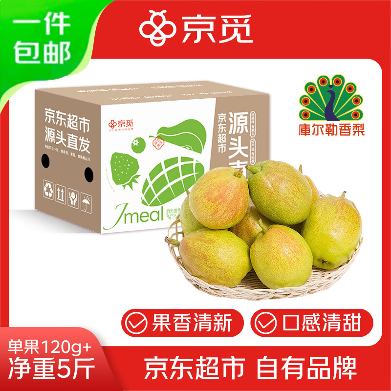 京觅库尔勒香梨 净重5斤 单果120g+ 脆甜爽口 生鲜水果 源头直发